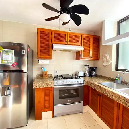 Villa Angeles - Elegancia En La Zona Hotelera also comes with a fully furnished kitchen. Cancun airport can be reached in 21 minutes by car. Guests can dive into a swimming pool.